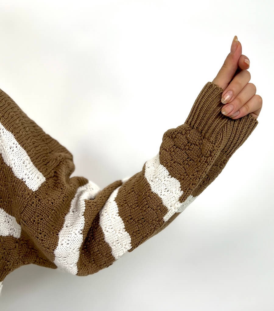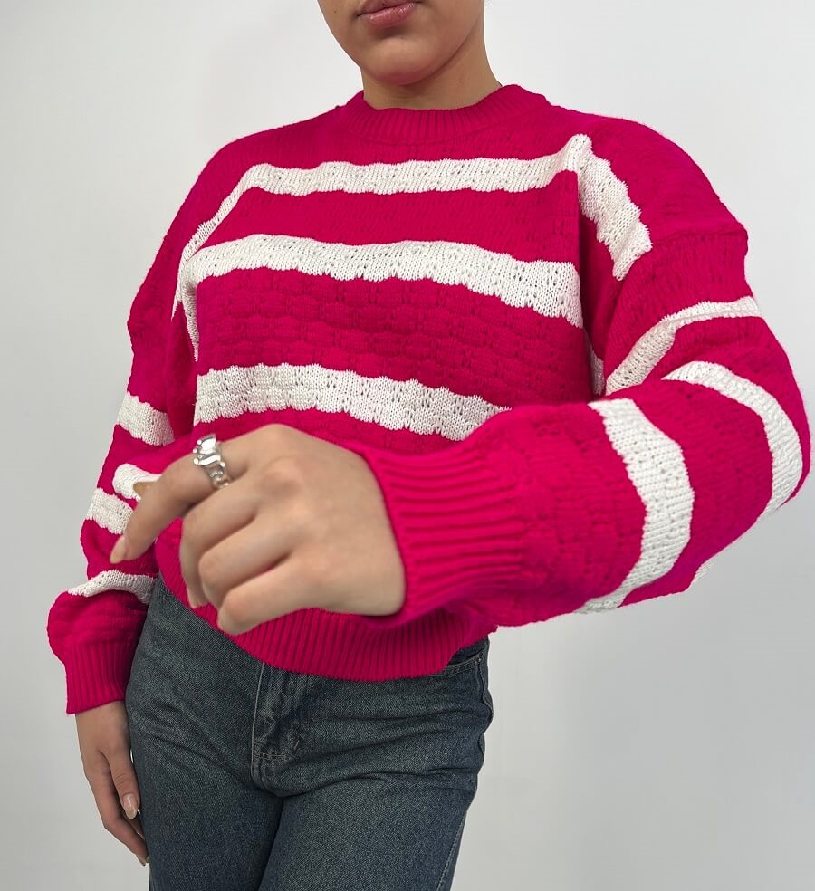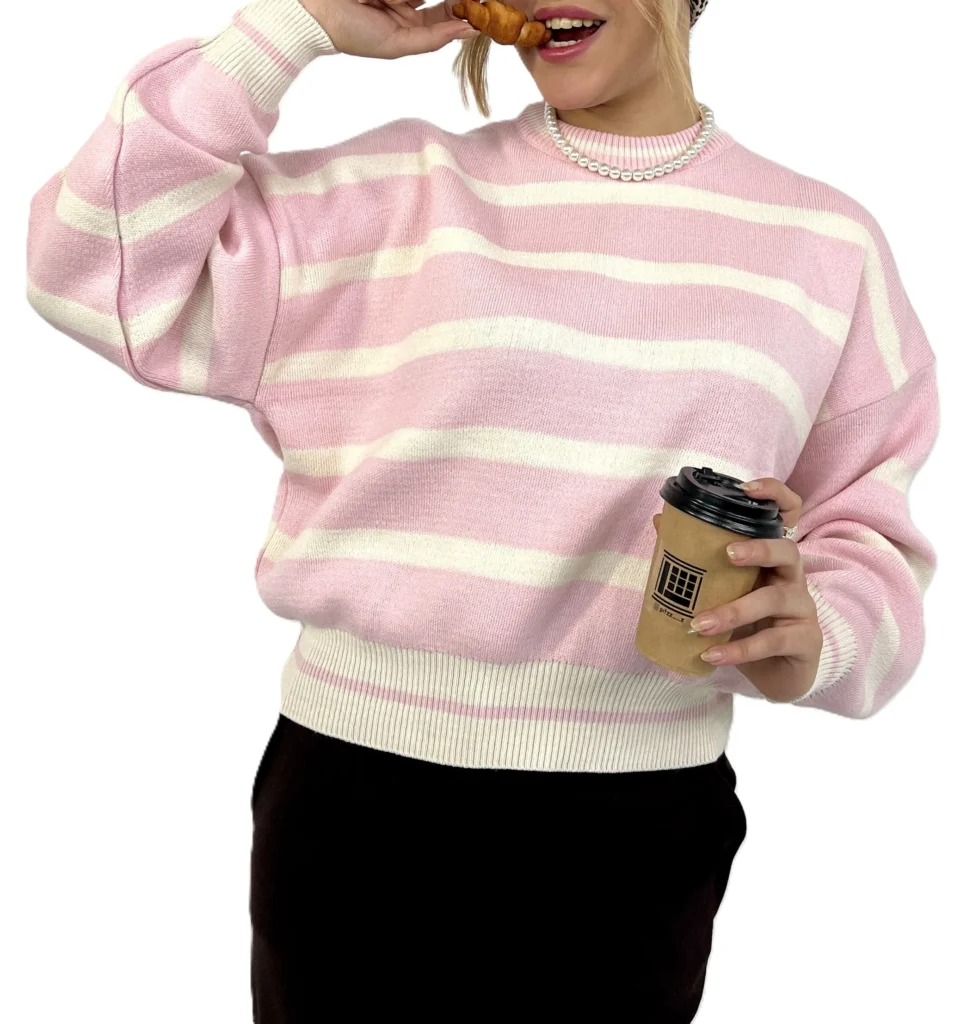 سویشرت بافت راه راه زنانه | خرید سویشرت فری سایز شیک برند پانیذ کد ۸۳۶