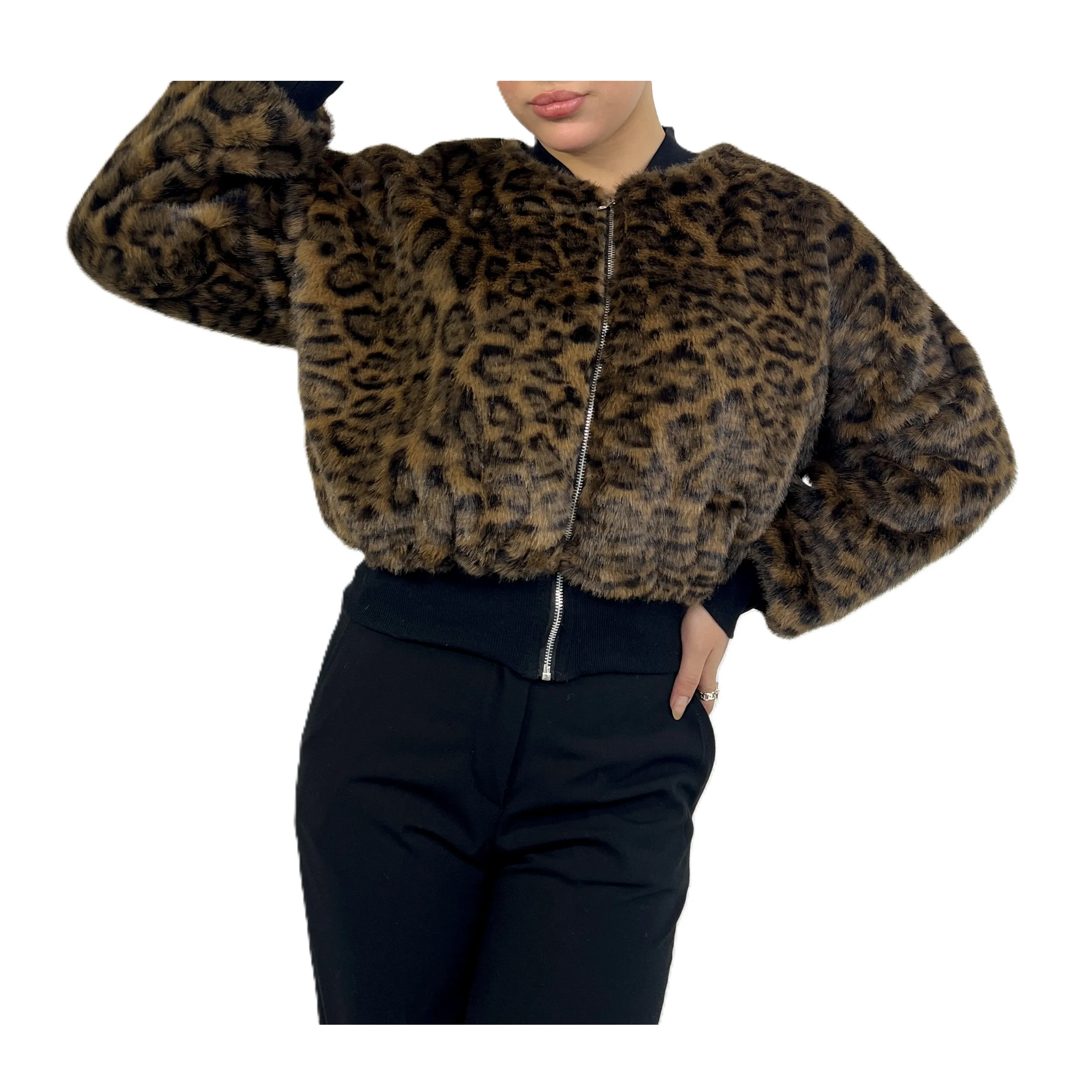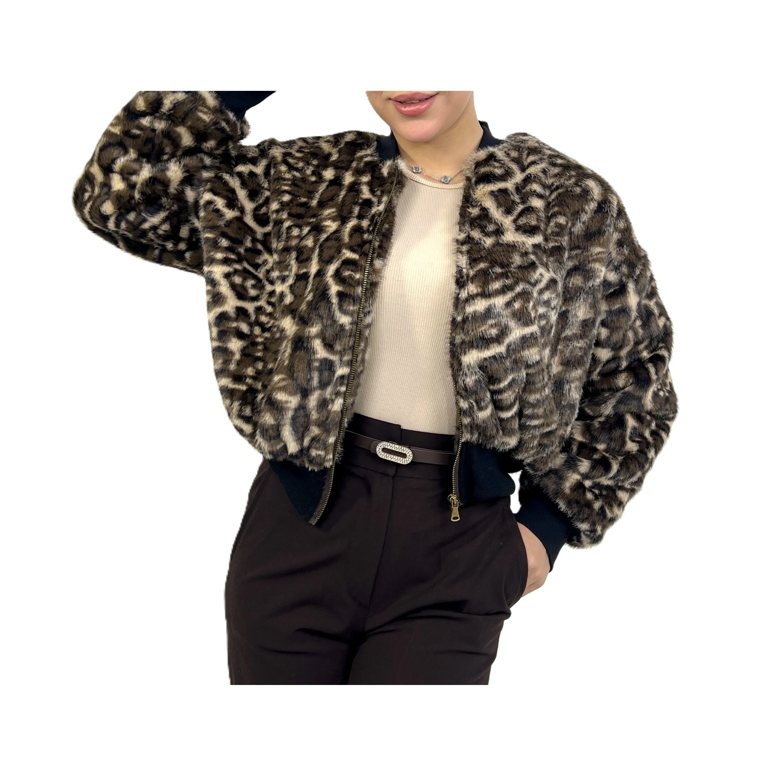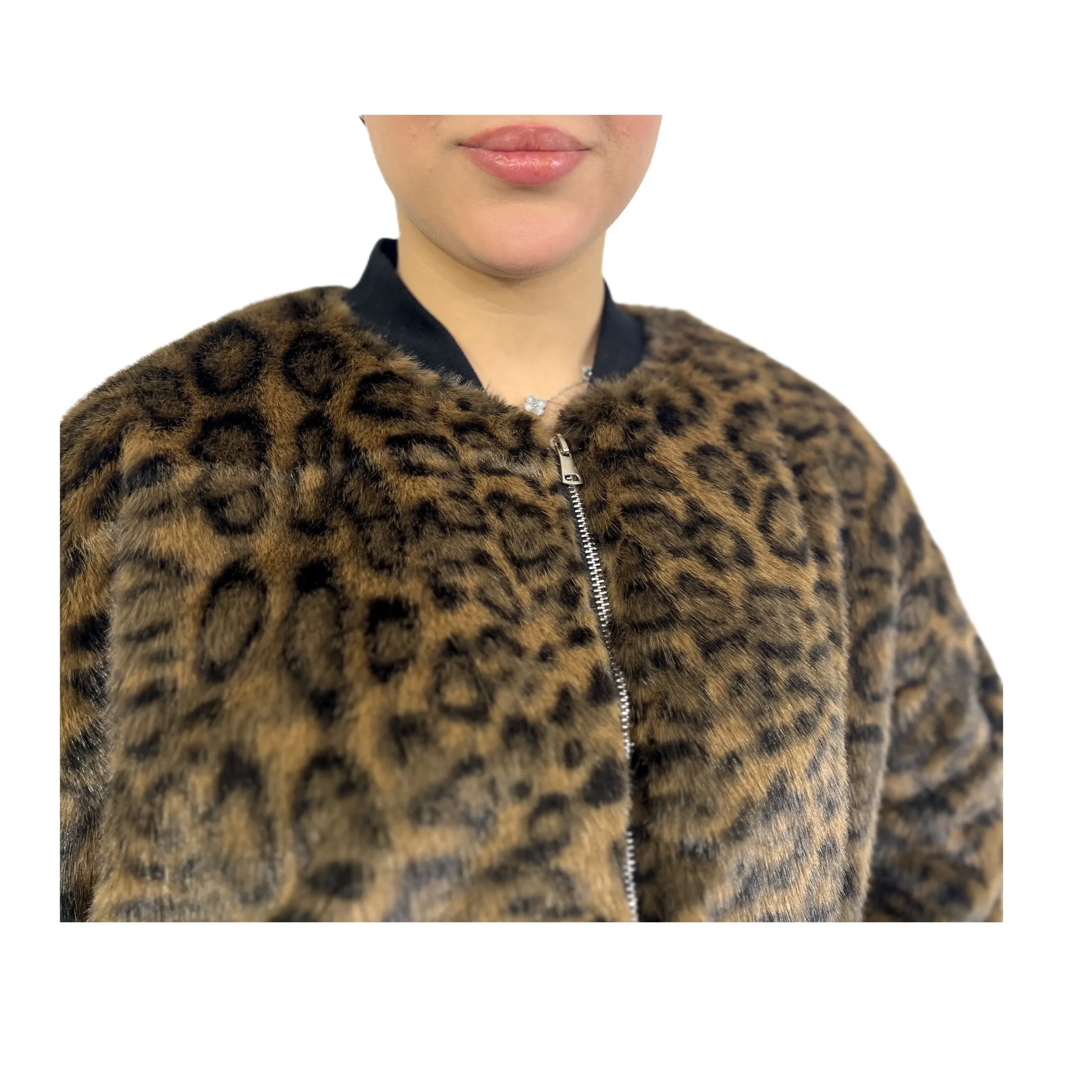 بامبر پلنگی زیپ دار زنانه | خرید بامبر جکت خز پلنگی فری سایز برند پانیذ ۷۴۳