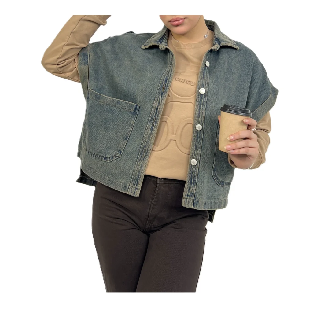 وست جین زنانه | خرید جلیقه جین کوتاه فری سایز برند پانیذ کد ۷۸۹